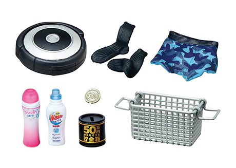 AĀ miniature figure that reproduces a man's room. It includes a wide range of men's items such as shavers and weight training equipment!